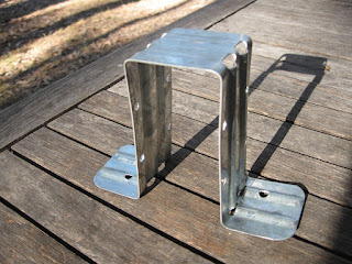 Meanwhile Josh found the brackets which need screwing on next, appropriately called 'top hats'. He spent the afternoon bending them into shape so now they are ready to screw the joists to the bearers.